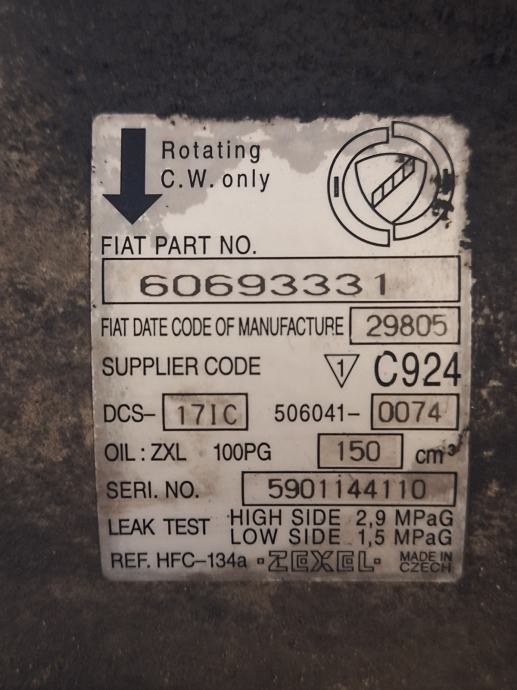 Alfa Romeo 159 1.9JTD 85kw 2006 kompresor klime 60693331