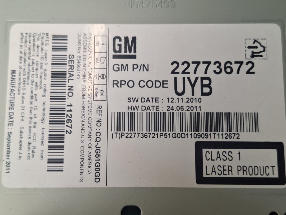Chevrolet Cruze 2012 radio cd 22773672