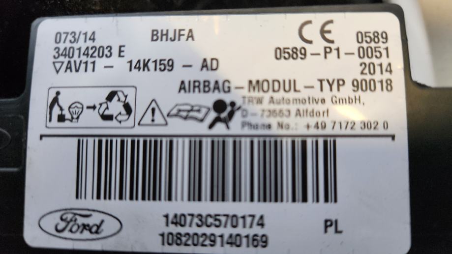 Ford B-Max 2014 desni stropni strešni airbag zavesa AV1114K159AD