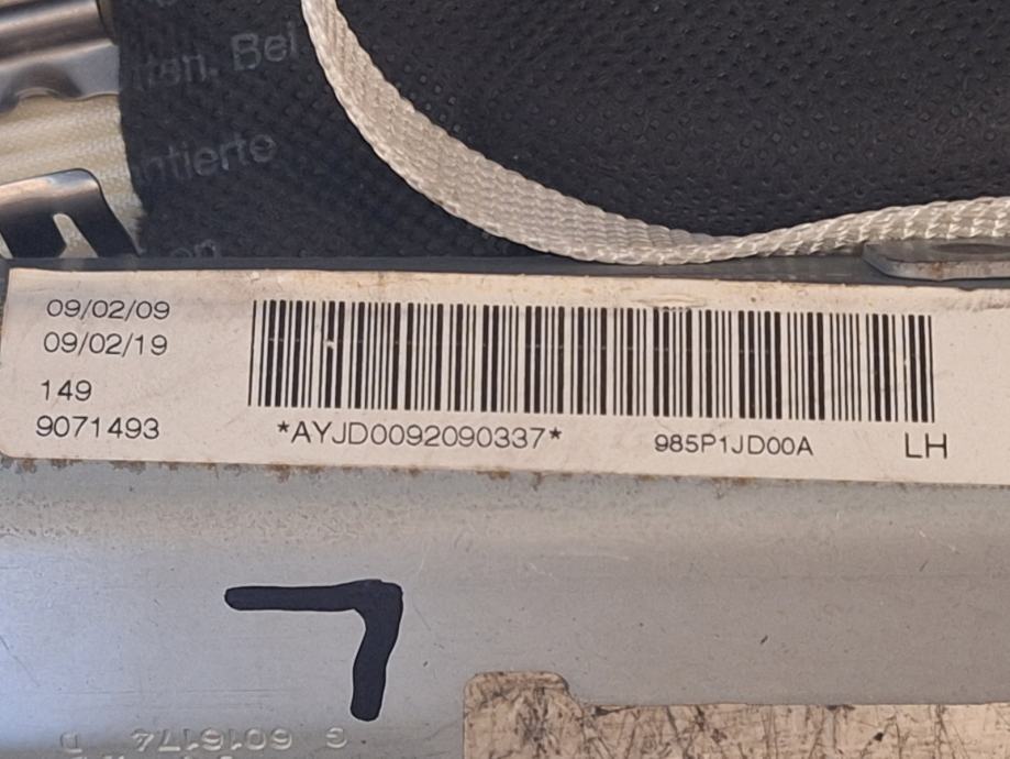 Nissan Qashqai 1.6B 84kw 2009 levi strešni airbag 985P1JD00A