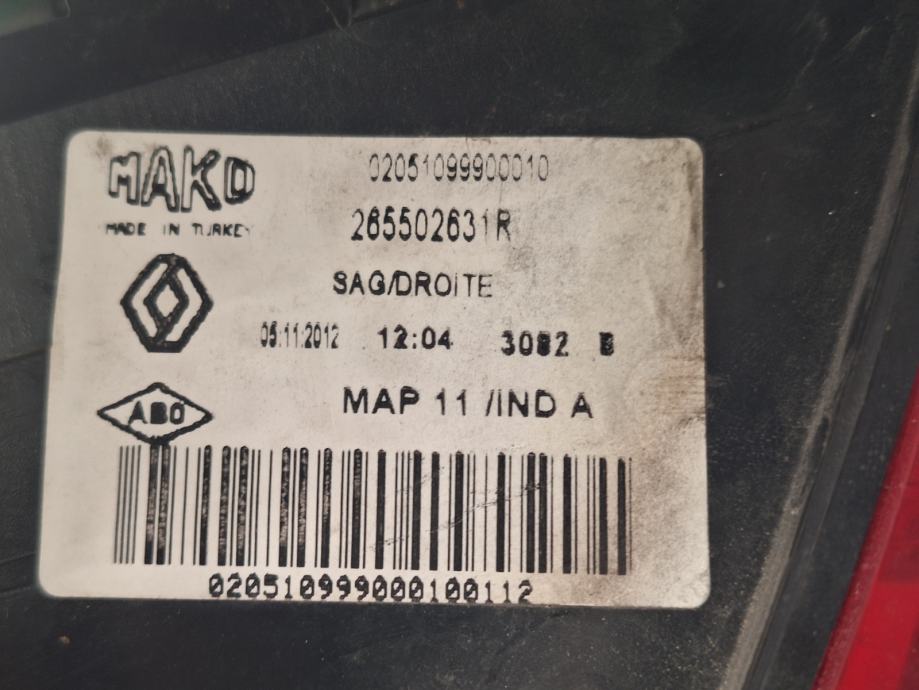 Renault Clio 4 2012 zadnja desna zunanja luč 265502631R