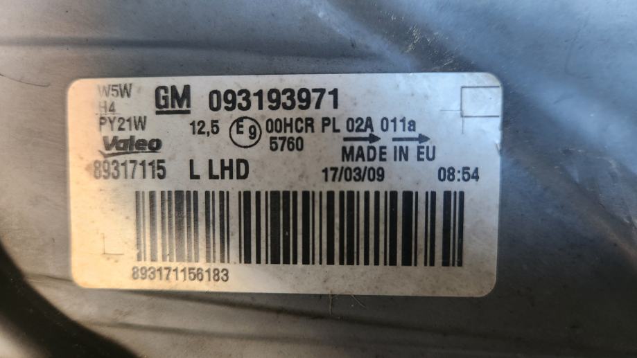 Opel Agila B 1.2 2009 sprednja leva luč žaromet 093193971